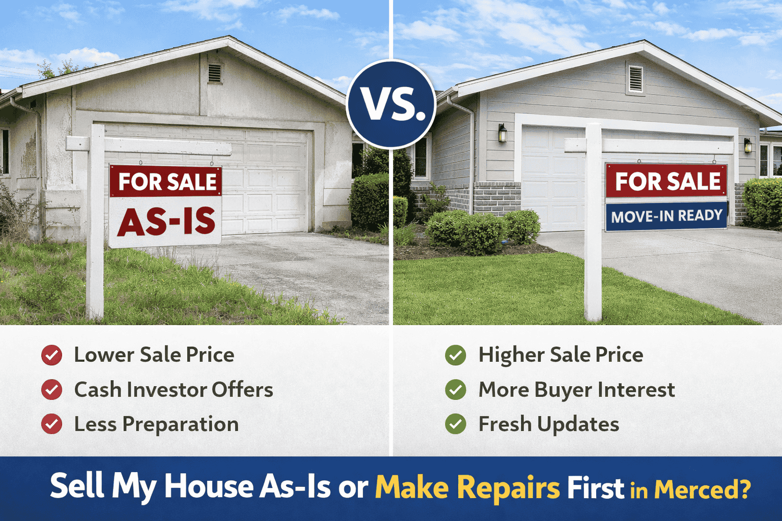 Sell my house as-is or make repairs first in Merced is one of the most common questions I hear from homeowners preparing to sell. It’s a smart question, because the right answer can mean tens of thousands of dollars difference at closing.