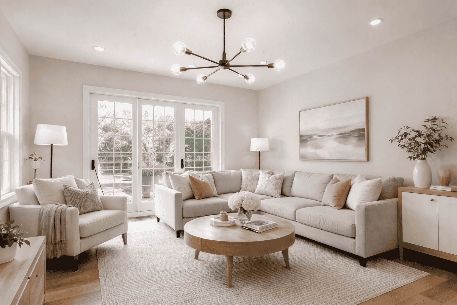 Interior home refresh with neutral paint and updated lighting in a Merced home.